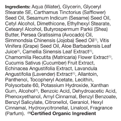 - Feature : Soothes and softens normal to dry skin while providing hydration / Creamy, hypo-allergenic lotion packed with rich botanical emollients such as aloe vera, green tea and chamomile / 100% vegetarian ingredients / No animal testing / NO: parabens, phthalates, or synthetic fragrances