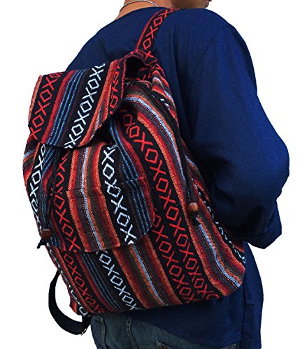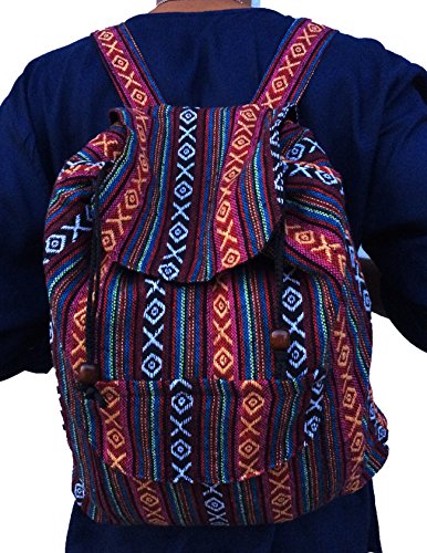 Everyday, shoulder bag that doubles as a backpack and shoulder bag! So very durable hand weave cotton fabric that's colorful and brings fashion sense to practical use. Large sized zippered compartment with an inside zippered pocket and strong yet comfortable cotton straps.