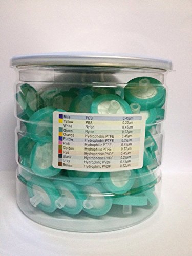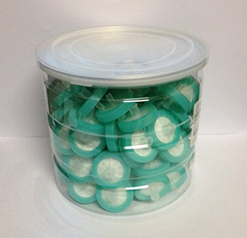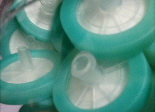 -. Feature : Material : Nylon membrane, Welded syringe filter / Type : Disposable syringe filter / Pack : 100 pcs/cartridge (PET) / Size : Diameter 25 mm, Pore size 0.22 µm / Color : Green