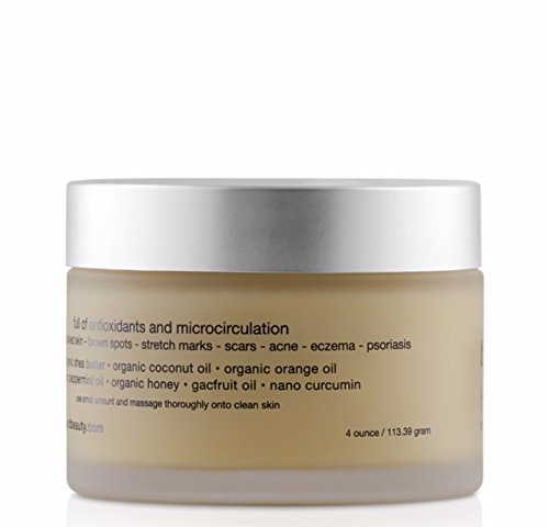 -. Feature : Our unique manufacturing development process provides a powerful punch of high nutrient content, with the best natural healing properties for the skin, free of chemicals, and preservatives. / Our Micro Circulation and Nano Molecular Delivery technology will nourish and mend damaged skin, giving you instant results, instant gratification, making you look and feel more luxurious. (Great for tightening and rejuvenating the skin of the neck and décolletage) / Naturally contains moisturizing fatty acids and is rich in vitamins A, E, and F, naturally contains cinnamic acid providing UV protection equivalent to SPF6. / Raw, organic, unfiltered grade (A) Shea Butter from the nut of an African Shea Tree. 4 ounces of majestic Body Butter! / Made in the U.S.A, family owned and operated, buy now with confidence, our 100% Satisfaction guaranteed or your money back.