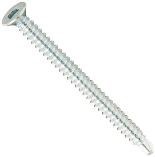 Steel Self-Drilling Screw, Zinc Plated Finish, 82 Degree Flat Head, Square Drive, #2 Drill Point, #8-18 Thread Size, 2" Length (Pack of 50)