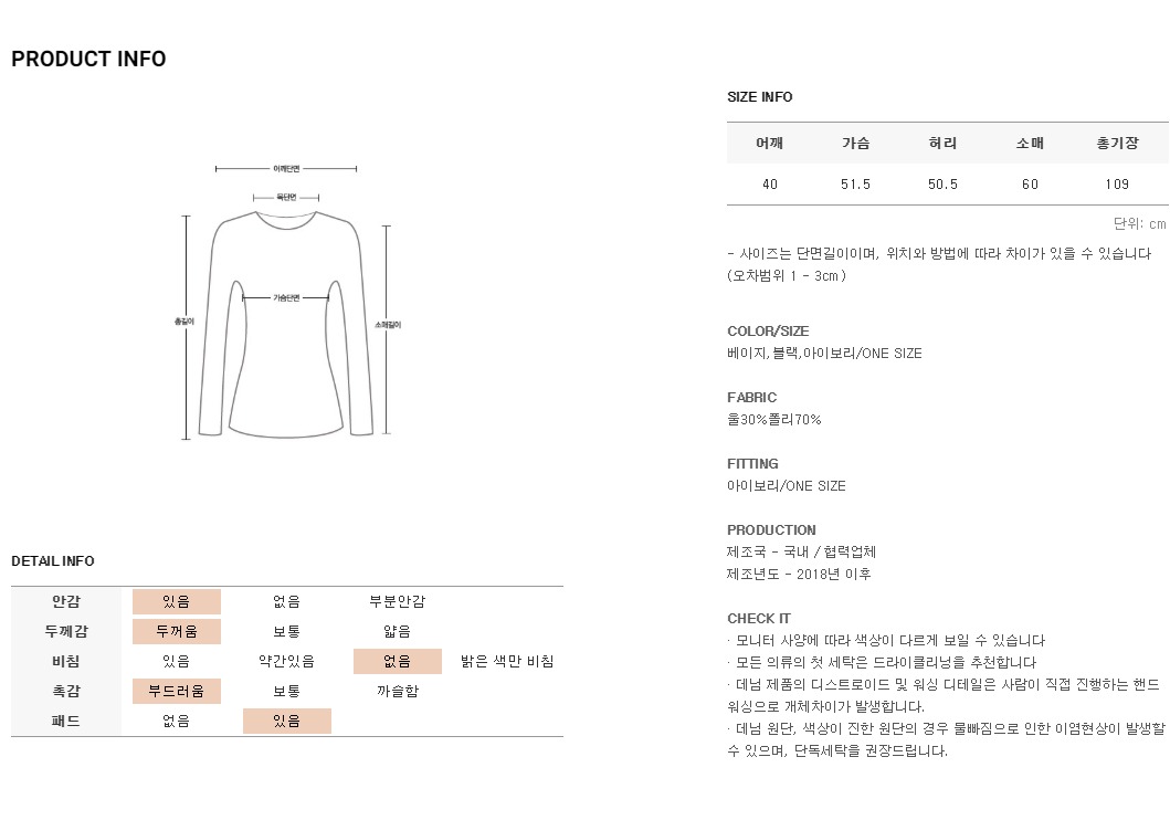 *모든 의류의 첫세탁은 드라이크리닝을 권장해드립니다*