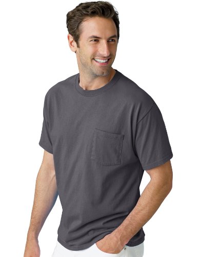 Hanes Men's TAGLESS 6.1 Short Sleeve Tee with Pocket, 2XL-Smoke Gray