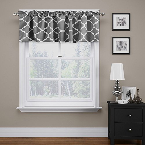 FlamingoP Moroccan Mild Gray Valance Curtain Extra Wide and Short Window Treatment for for Kitchen Living Dining Room Bathroom Kids Girl Baby Nursery Bedroom 52" X18"