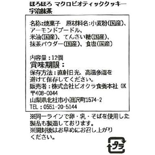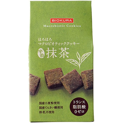 原材料:小麦粉(国産)、アーモンドプードル、米油(国産)、てんさい糖(国産)、抹茶パウダー(国産)、食塩(国産)