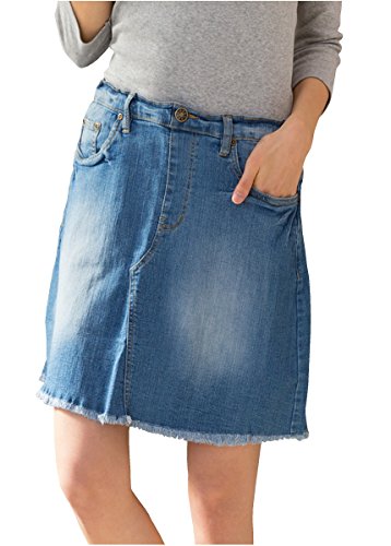 -. Title : (クロスマーベリー) Crossmarbery ビンテージ デニムスカート 裾 フリンジ ウエスト ゴム 大きいサイズ M~4L
