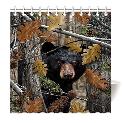 HommomH 72" x 72" Shower Curtain With Hooks Bathroom Anti-Bacterial Waterproof Camouflage Camo Bear
