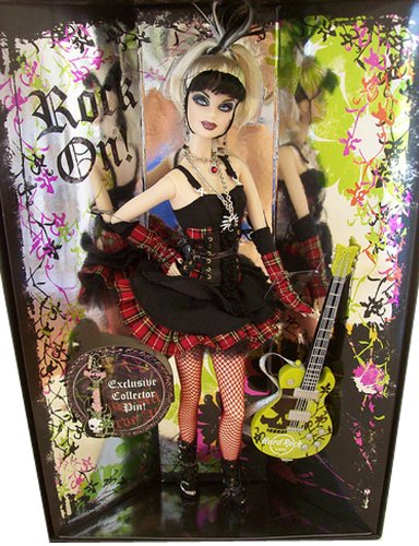 -. Feature : Barbie GOLD Collector Doll 2008 - HARD ROCK CAFE #6 / Includes Jamming HRC "Guitar" and EXCLUSIVE Collector Pin!