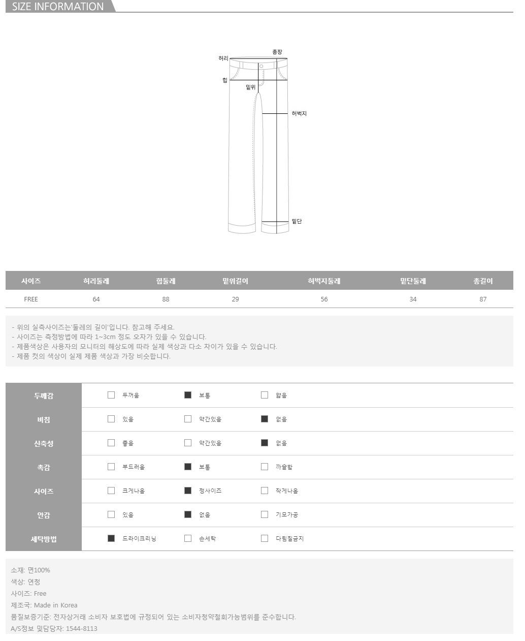 모델의 착용 컬러는 연청 입니다.