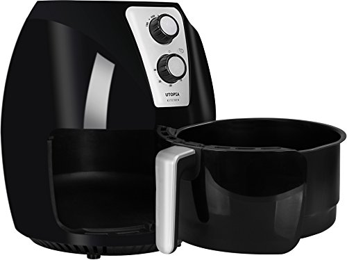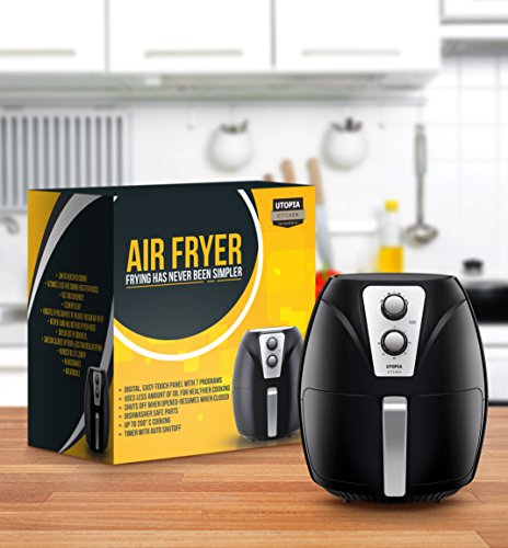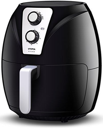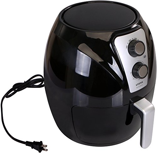 The Utopia Kitchen 3.2 Quart Air Fryer let's you fry your favorite food without the unhealthy oil. There is a convection fan system used to circulate the air around, giving your food a crispy and healthy taste. Can be used for baking items as well.