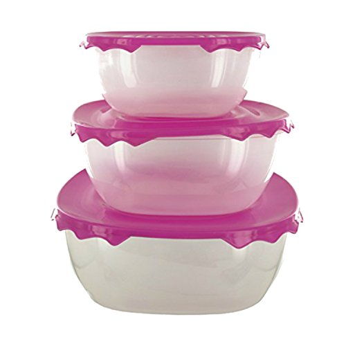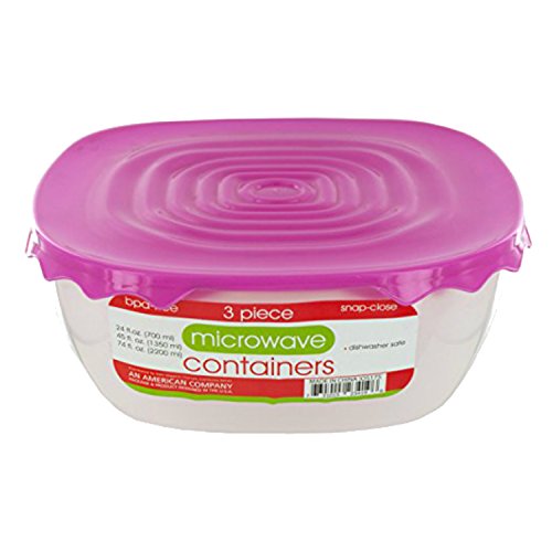 - MICROWAVE BOWLS - 3 piece reusable nesting Microwave Food Containers Set includes one 74 ounce/9 cup, one 45 ounce/5.5 cup and one 24 ounce/3 cup container each with a snap-close lid. Perfect for preparing meals and reheating or refrigeration of leftovers. Comes in assorted colors