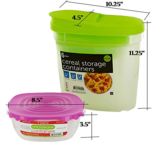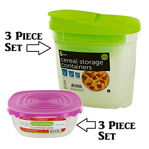 - 2 SET BUNDLE contains a 3 piece Cereal Container Set and a 3 piece Microwave Food Storage Set.
