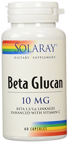 -. Binding : Health and Beauty -. Brand : Solaray -. EAN : 0076280008791 -. Feature : Beta glucan is a polybranched material that functions in the body as an insoluble fiber and has been credited with strengthening the body's natural defenses against illness / Vitamin C has been added for greater antioxidant protection against free radical damage / Once a day formula -. IsAdultProduct : 0 -. Label : Solaray -. Manufacturer : Solaray -. MPN : 076280008791 -. NumberOfItems : 1 -. PackageQuantity : 1 -. PartNumber : 076280008791 -. ProductGroup : Health and Beauty -. ProductTypeName : HEALTH_PERSONAL_CARE -. PublicationDate : 2014-10-04 -. Publisher : Solaray -. ReleaseDate : 2015-03-19 -. Size : 60 -. Studio : Solaray -. Title : Solaray Beta Glucan Enriched with Vitamin C Capsules, 10 mg, 60 Count -. UPC : 076280008791