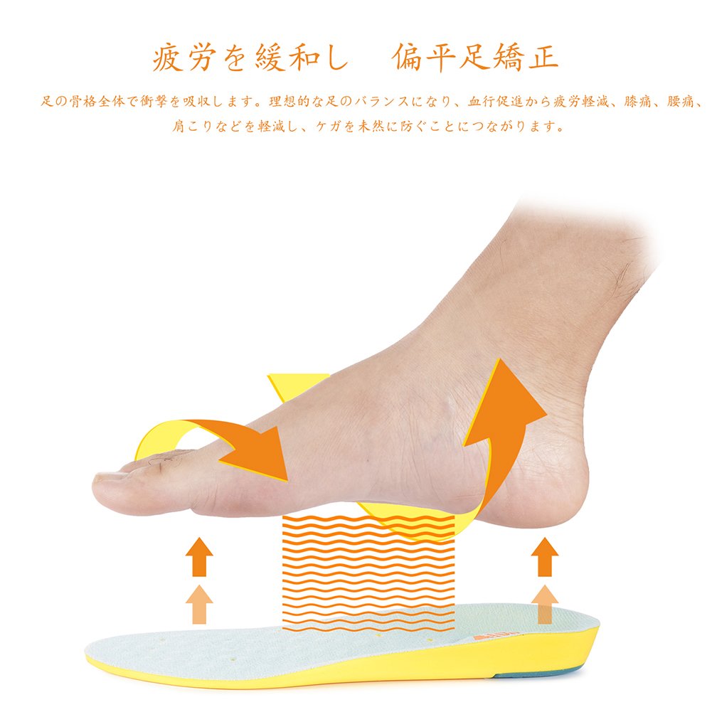 By supporting the arch, it reduces the burden on the legs and waist.