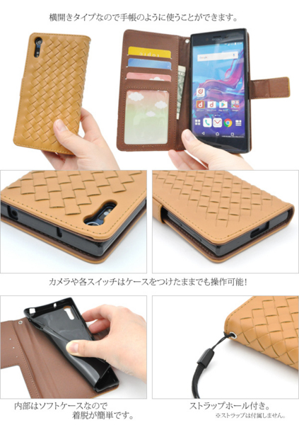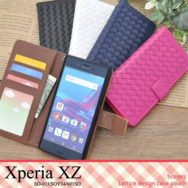 ラティス(格子)デザインのXperia Z5用レザーデザインケースポーチ。