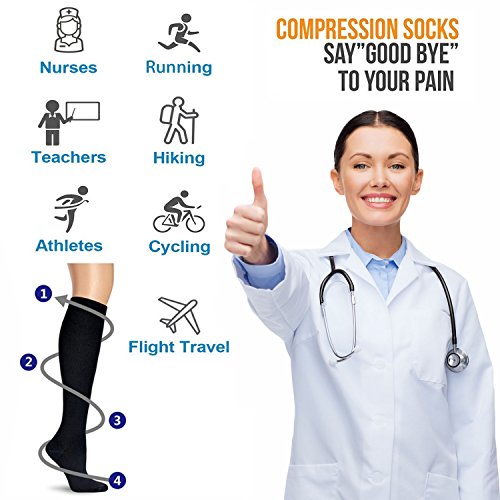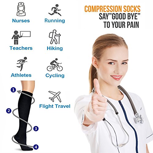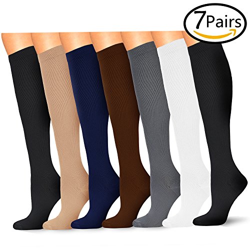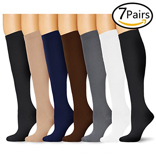 7 Pairs Compression Socks For Women and Men 15-20mmHg Whether you're an athlete who wants to excel in the game or someone dealing with pain due to an injury or a chronic condition, supporting proper blood flow to your feet is of the utmost importance.Compression Socks help to keep blood flowing to boost athletic performance and alleviate pain due to a number of conditions.? Plantar fasciitis socks are revolutionary ankle sleeves with daily use design help you maintain a full range of motion. Our ankle socks feature graduated compression, squeezing the foot more or less across their length in key areas to promote circulation optimally. Our ankle support socks provide a number of benefits, including:? - Extra support for the ankle? - Heel arch support for the rest of the foot? - Circulation support to fight fatigue? - Relief from pain due to plantar fasciitis and foot injuries? - Assistance with recovery after exercise? - Reduced risk of injury to the feet due to the socks' warming effect? - Moisture-wicking design to keep feet dry? - Anti-bacterial properties to promote foot health? With our unique design, foot sleeves can be used as ankle support socks for athletes, as heel hugger ankle support socks for injuries or as a planter fasciitis support in place of an uncomfortable plantar fasciitis night splint or foot brace.? Wear them for:? - Everyday wear? - Running? - Bodybuilding? - All types of sports? 0 |
