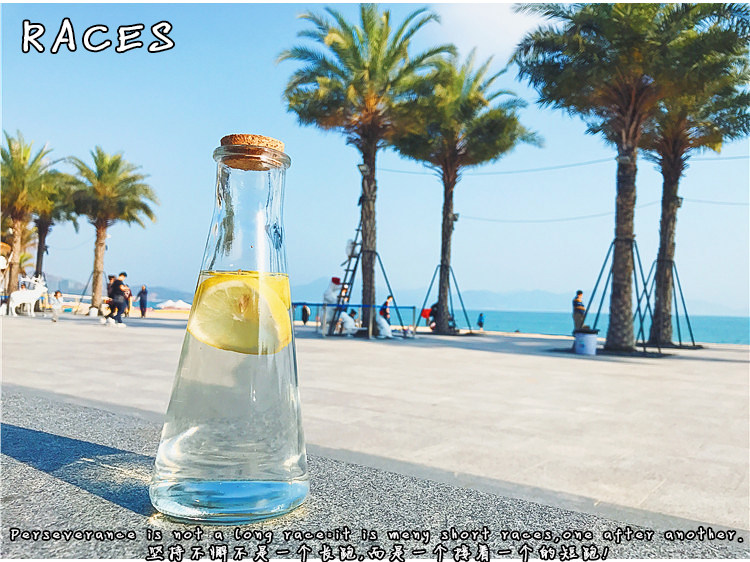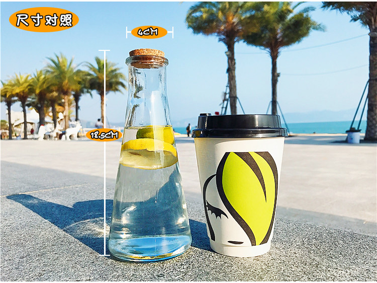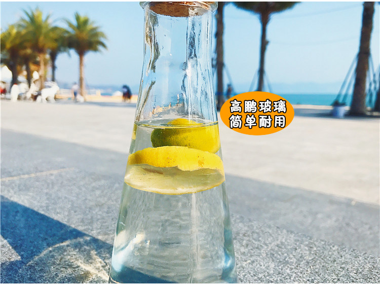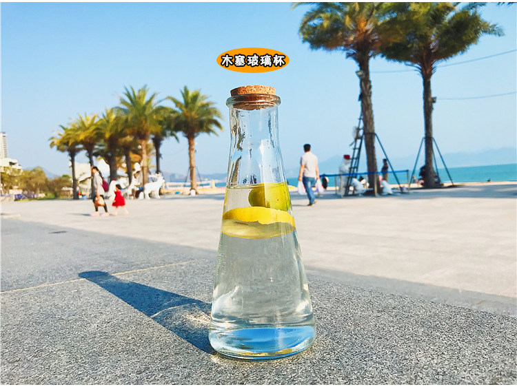 韩国透明简约木塞锥形漂流玻璃水瓶冷饮果汁柠檬奶茶店咖啡厅杯子