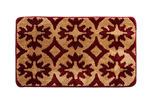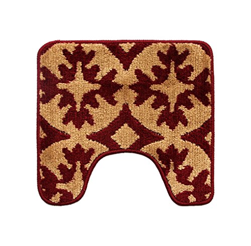 Microfiber Bathroom Rugs Set Non Slip Bath Contour Mat Set Shower Rug Set Of 2 (Red&Gold)