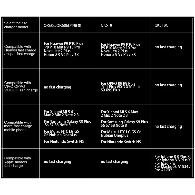 Type 6:Fast Car Charger For Huawei P10 iPhone 6 7 Plus