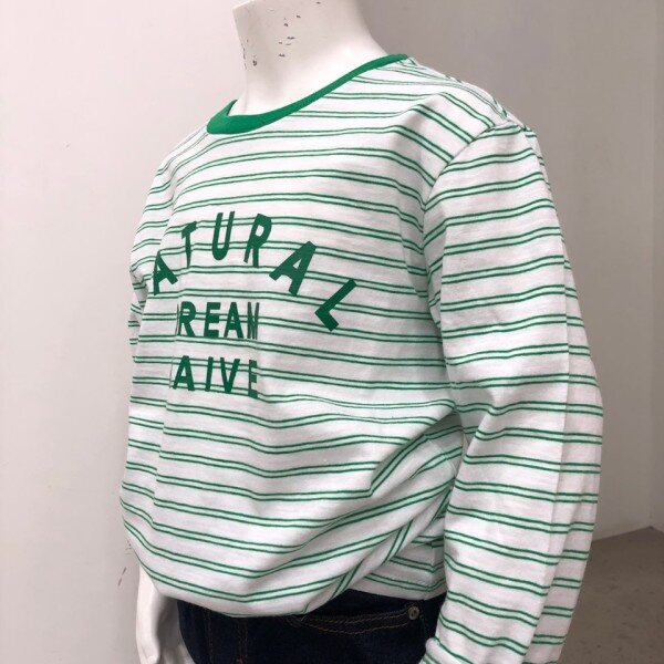 2019년 S/S 신상.남아, 여아 공용으로 착용가능한 S슬럽 스트라이프 레터링 티셔츠입니다. 깔끔한 화이트와 컬러 포인트 된 스트라이프 티셔츠 입니다.