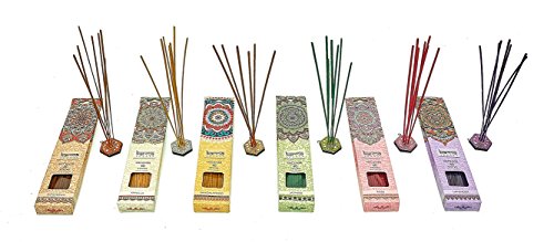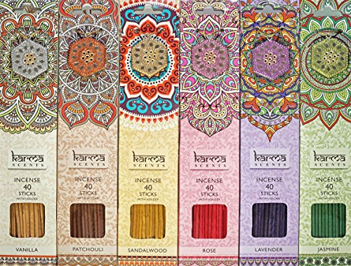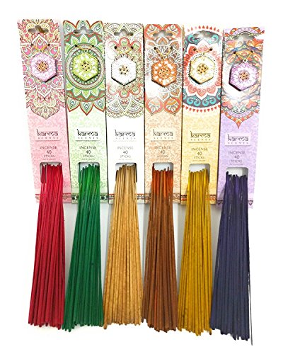 Premium Incense Sticks 6 Set Gift Pack with a Sparkly Holder In Each Box 240 Sticks, by Karma Scents