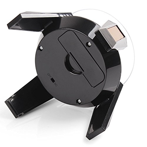 - Powered by 4 built-in solar panels, the turn table can rotate by 360-degree clockwise or counterclockwise under the normal sunlight or indoor light.