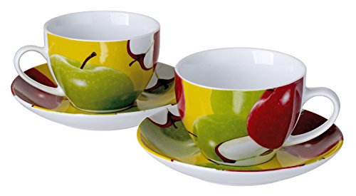 -. Title : Original Cucina Italiana Porcelain Teacup and Saucer Set Of 2, 6 Oz , Apple Print