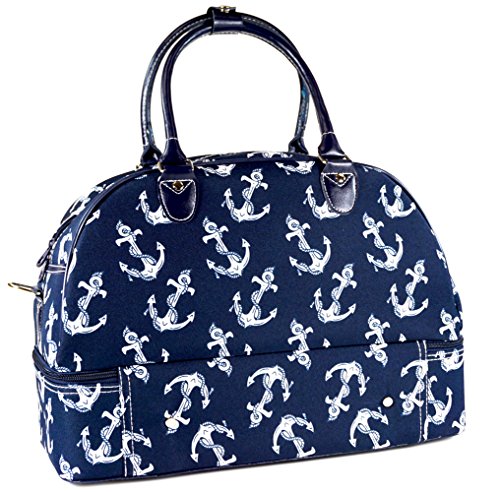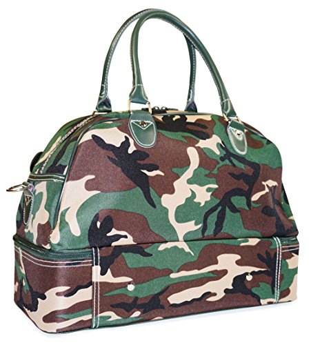 -. Binding : Apparel -. Brand : Ever Moda -. ClothingSize : Large -. Department : womens -. Feature : Adjustable, detachable non-slip padded shoulder straps and permanent hand carry handles / Contains a bottom zipper compartment for shoe, storage or for other items / Metal feet allows stability to bag when setting down and provides bag floor not to touch floor directly to get dirty / Two front exterior snap pockets / Matching color zippers -. ProductGroup : Apparel -. ProductTypeName : BAG -. Size : Large -. Title : Ever Moda Designer Print Collection Duffle Bag 17-inch