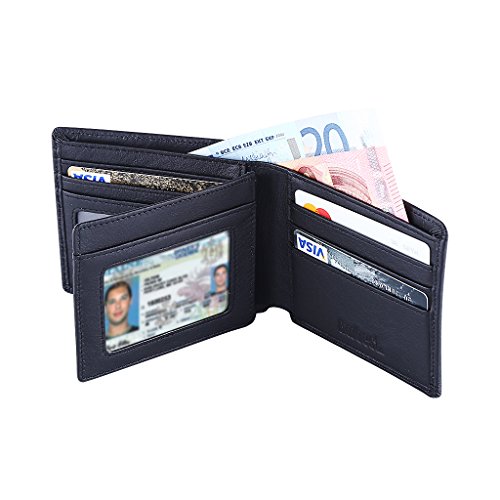 -. Feature : *Effective and Safty-The RFID Blocking Function are comfirmed by customer.Don't need to overpay for RFID protection. / *Stylish Design-SIZE:4.5" x 3.8'' The wallet is trifold,Designed 2 ID window,8 RFID card pockets,2 Currencty pockets.Enlarge credit card pockets quantity.Very convenient for travel men . / *#1 Grade Napa Genuine Leather- Made with the Soft, Smooth Genuine leather,The surface is very slim.It's easy in and out your pocket. / *Functional for your Travel:More Unauthorized RFID NFC and Scan in our life.When you shopping or travel,You won't worry about the Identity are stolen . / *Service-We Stick to give more High quality Wallet to You, You will Love Our RFID Wallet,Any reason You are not 100% Satisfied,Pls Tell us and Our Customer service will Make things Right.(Full Refund or Free Replacement).