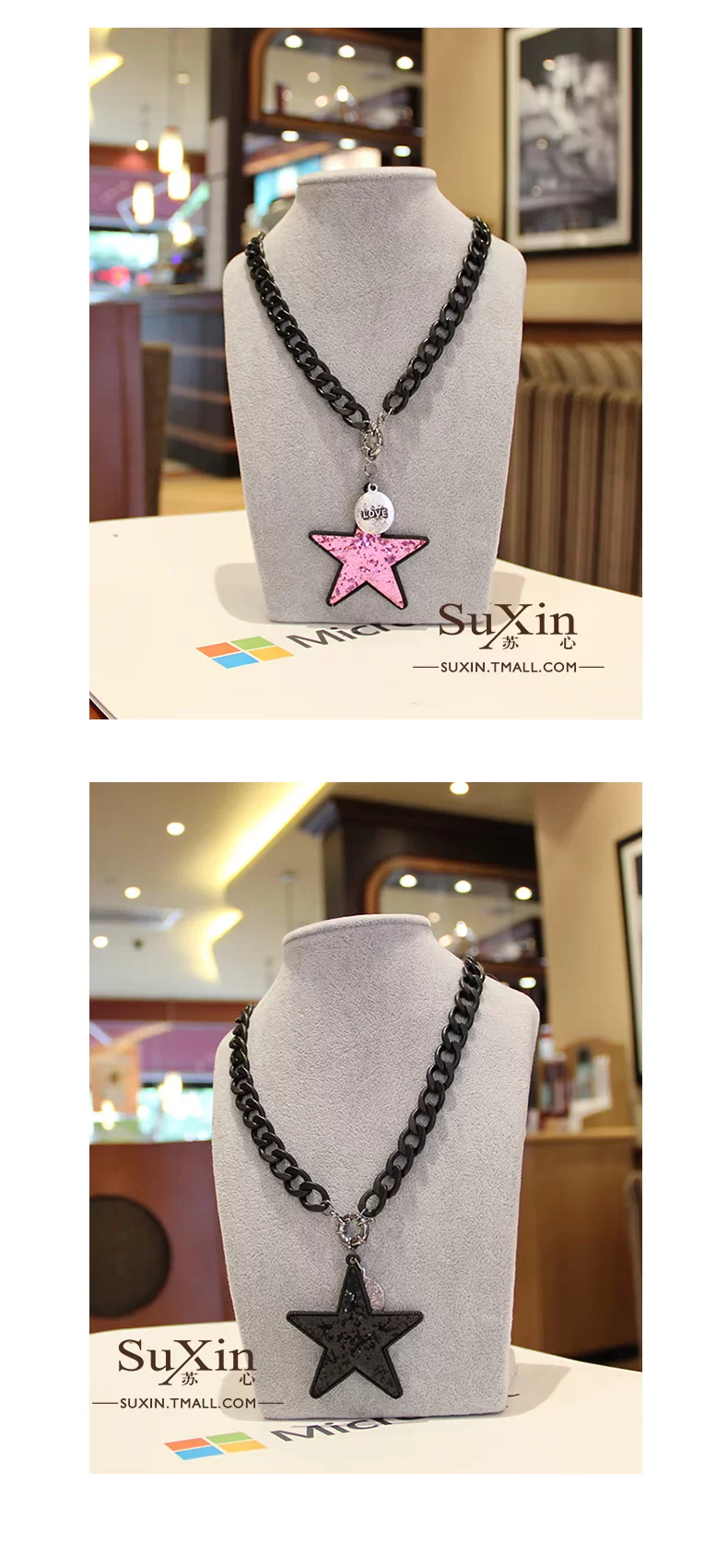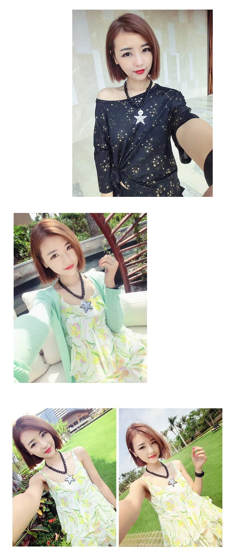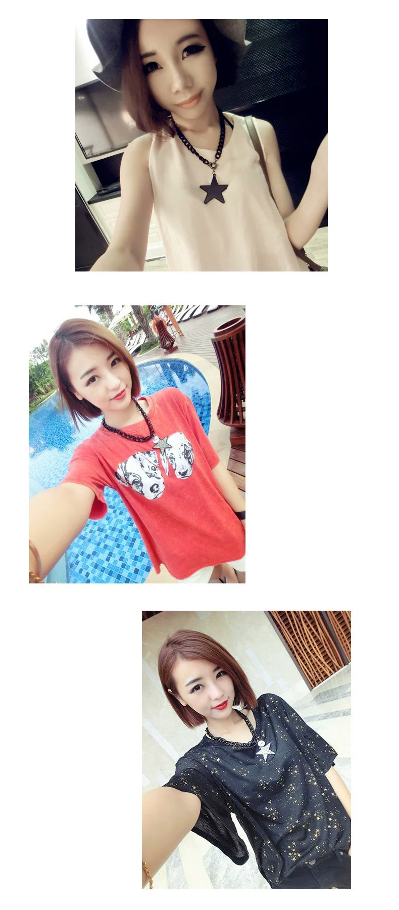 color1 color2 Korean star pentagram necklace female short paragraph clavicle exaggerated fashion clothes and accessories, jewelry pendants pendant Korean Product Size: Chain circumference of about 46CM diameter of about 5.8CM pentagram