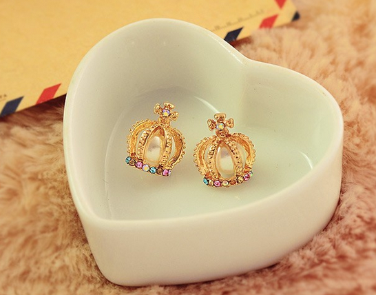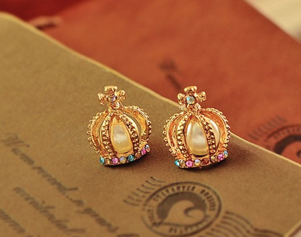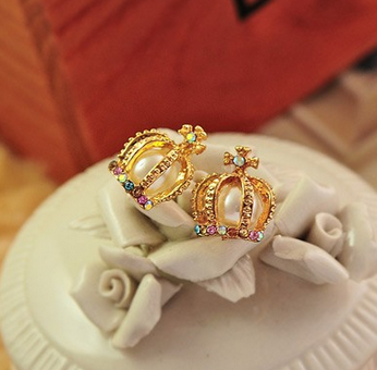 anting antik mahkota kristal mutiara emas Baru hadiah promotional fashion crystal crown Punk gold pearl stud earrings New gift JEW SJA0846535262 GHJ qty000
