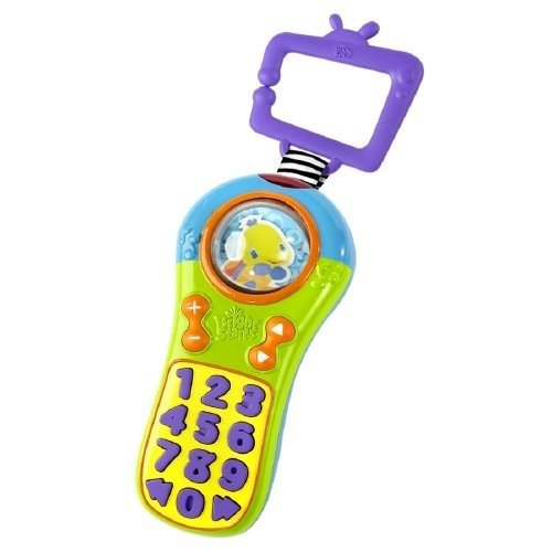 -. Feature : Now Baby Can Play Just Like Mom & Dad with This Cute Remote Control! / Ages: 3 Months & Up / Large, Easy to Press Buttons Activate 25+ Melodies, Numbers, & Silly Sounds / Spinning Roller Ball / Introduces Baby to Numbers