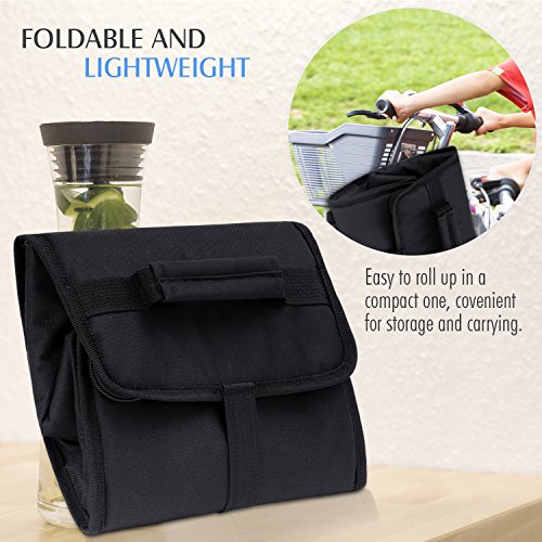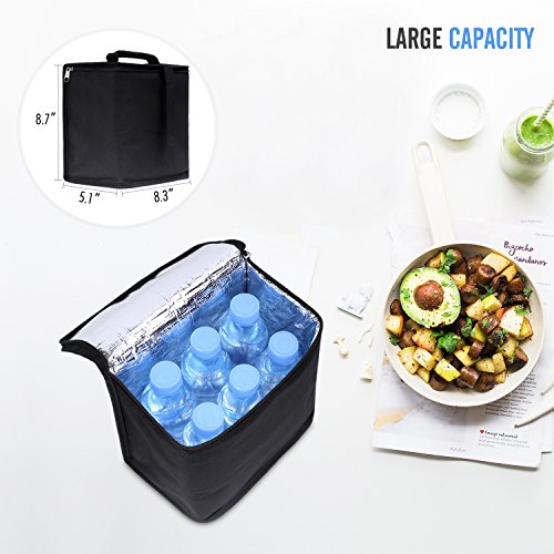 Insulated Lunch Bag, Nuovoware Reusable Outdoor Travel Picnic School Lunch Box Collapsible Tote Bag with Zipper Closure, Foldable & Multi-use for Men, Women and Kids - BLACK