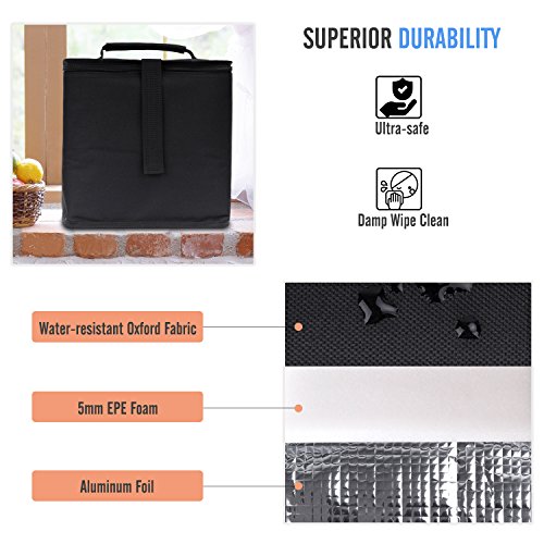 - POWERFUL INSULATED: Safe and non-toxic insulated lining helps contribute a longer time on heat preservation and insulation than other conventional lunch bag for your food and drinks.