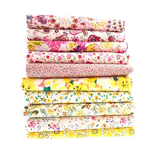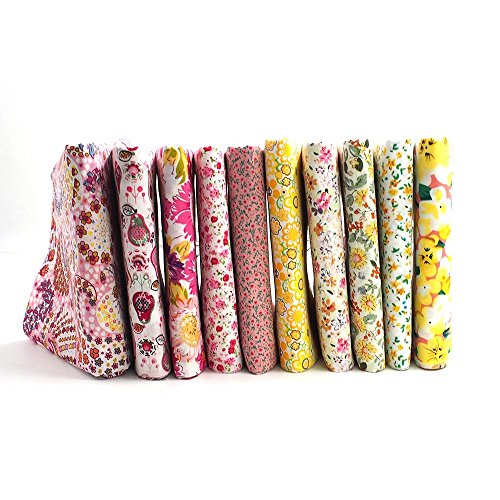 RayLineDo 10 Pcs Different Pattern Multi Color 100% Cotton Poplin Fabric Fat Quarter Bundle 18" x 22" Patchwork Quilting Fabric Yellow and Pink Series
