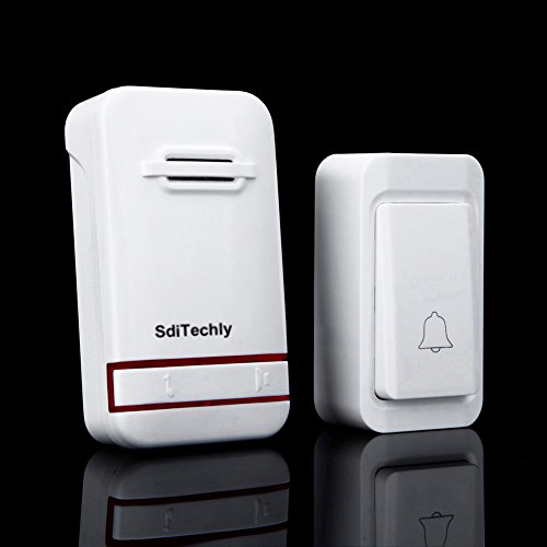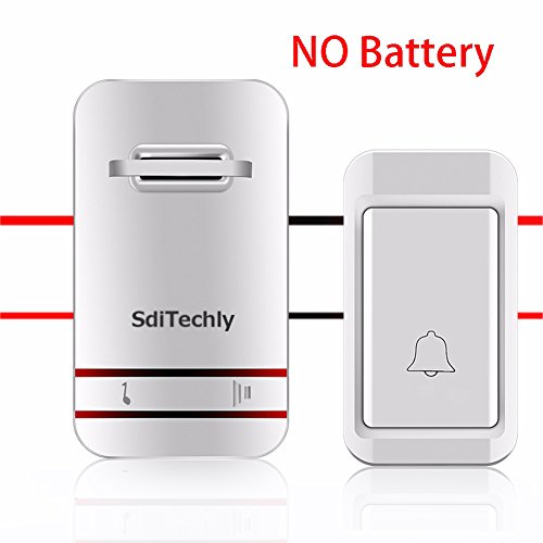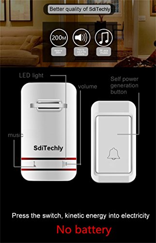 SdiTechly Wireless Doorbell Kits No Battery Required for both Transmitter and Receiver, Waterproof Push Button, 3-Level Volume and LED Flash, 38 Ring Tunes, (White)