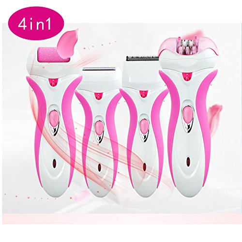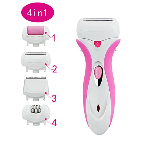 •ATTRACTIVE, SEXY AND SMOOTH SKIN FROM HEAD-TO-TOE: Exfoliates Dead, hard dry skin on feet; Removes Undesired hair on legs or arms, Unwanted ugly hair on other sensitive areas. 4-in-1 attachments include: epilation head, Pumice Stone head, shaver head and Hair Clipper.