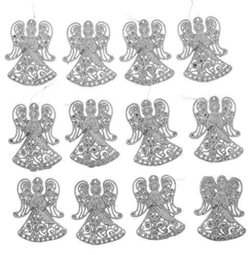 - Includes 12 Piece Set of Silver Glitter Angel Ornaments with Silver Hanging String