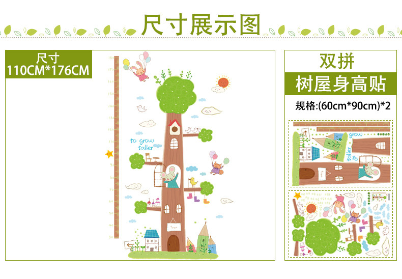 大型树屋身高贴 儿童房装饰贴纸 幼儿园卧室客厅量身高墙贴可移除
