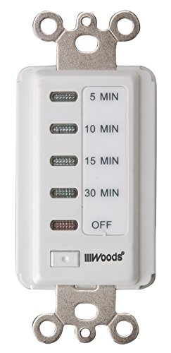 Woods 59007 Decora Style 30-15-10-5 Minute Preset Wall Switch Timer, White, 30-Minute. Automatic shut-off. Works with compact fluorescent bulbs. Push one button to set timer to 5-10-15-30 minutes. Works with lamps, fans, and other appliances easily. Install behind standard decorator or switch style wall plates. TOLL FREE HOTLINE, 1-800-561-4321. If you have immediate questions about application, installation, troubleshooting, or a damaged component, please call CCI Consumer product hotline at 1-800-561-4321 or email questions to: CCI.ConsumerSupport@southwire.com. The Woods (R) brand is a registered trademark of Coleman Cable Inc.Feature