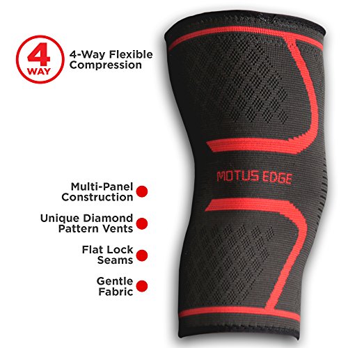 Motus Edge Extreme Athletic Knee Compression Sleeve for Running, Sports, CrossFit, Pain Relief, Rehab
