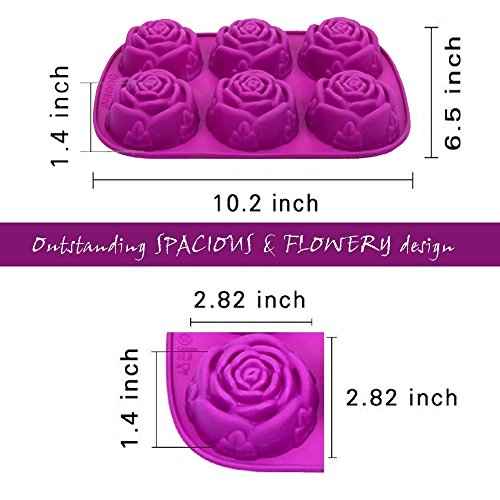 - ♥ [Rose flower Pattern]: 6 cavities of 2.82 inch diameter hemisphere design, lovely pink rose figure curved on top, and its depth goes to 1.4 inch.