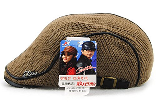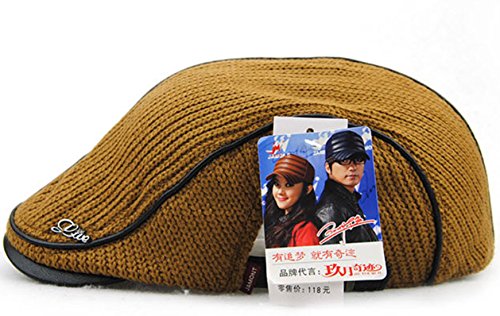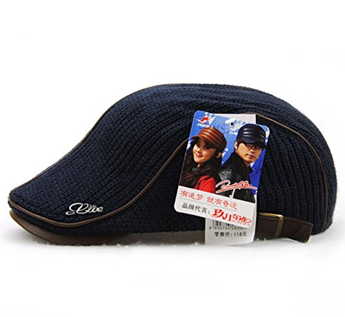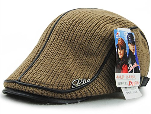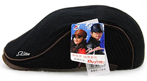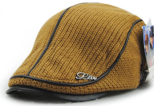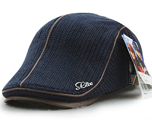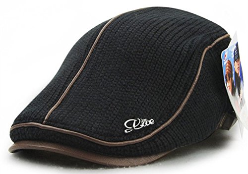 | GESDY Men's Cotton Flat Duckbill Hat Warm Wool Knitted Newsboy Ivy Cabbie Drving Hat |
