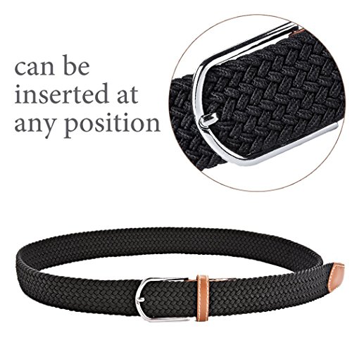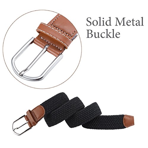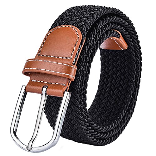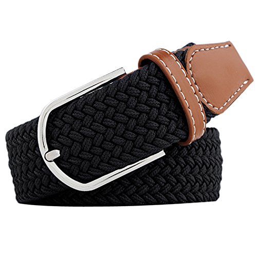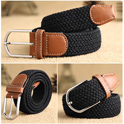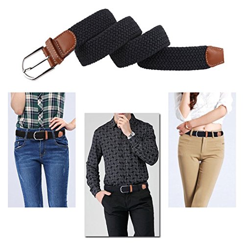Classic unisex canvas elastic fabric woven stretch black braided belt is great for men or women's casual or uniformed looks. show off your personal style with that fantastic belt. stretches for a fit that moves with you and the look goes with both casual and dressier styles.