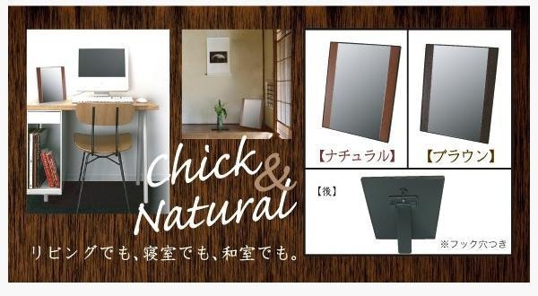 自然素材の家具やインテリアと相性の良い木目調のスタンドミラーです。木本来の色に近い「ナチュラル」と深い色がお部屋をシックに見せる「ブラウン」の2種類からお選びいただけます。落ち着いた雰囲気が、リビング、和室、書斎など様々なお部屋を味わい深く引き立てます。フック穴付なので壁掛けにも対応! |