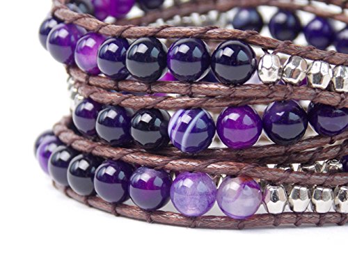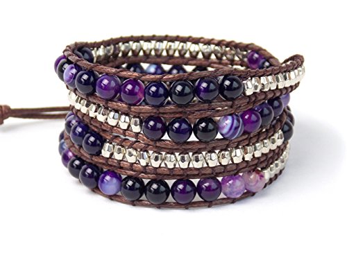 Featuring the tree of life button that slips into the loop closure. Beads are sewn onto chocolate color vegan nylon strands of rope.Feature