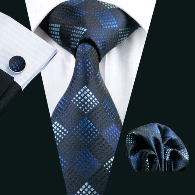 LS-354 2016 핫 새로운 남성 넥타이 격자 무늬 클래식 100% 실크 자카드 짠 넥타이 손수건 커프스 세트 남성 정장 웨딩 파티 비즈니스
