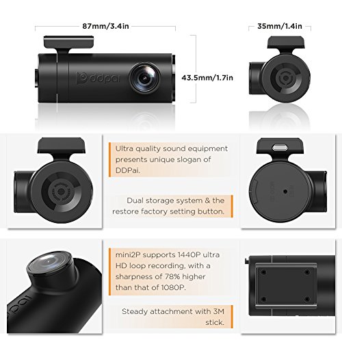 DDPai Mini2P Distortionless HD 1440P 2K Wi-Fi Dash Cam with F1.8 Aperture Super Night Vision