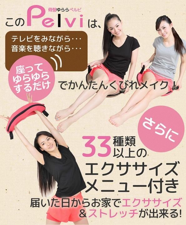 テレビを見ながら、音楽を聴きながら、座ってゆらゆらするだけでかんたんくびれメイク♪33種類以上のエクササイズメニューが付いているので届いた日からお家でエクササイズ&ストレッチが出来ます。 |