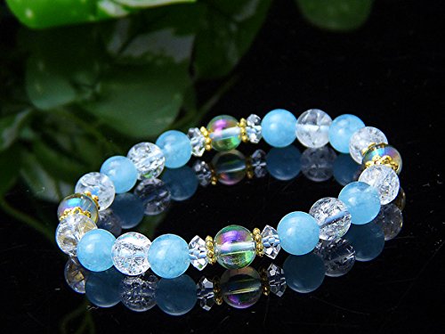 원본상품명: 【京珠堂】AAAアクアオ?ラ×クラック水晶×アクアマリン8mm パワ?スト?ン ブレスレット